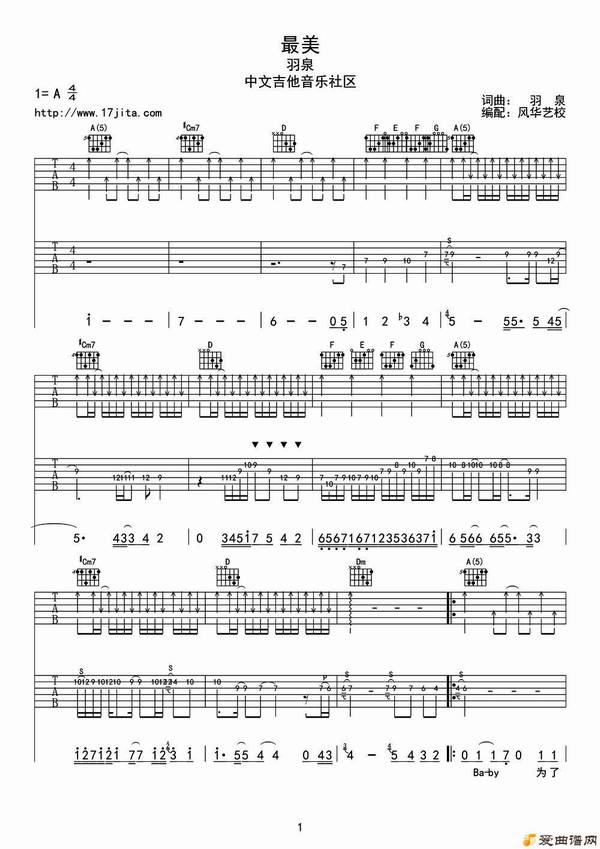 版本二:转自《中文吉他音乐社区》,风华艺校编配。