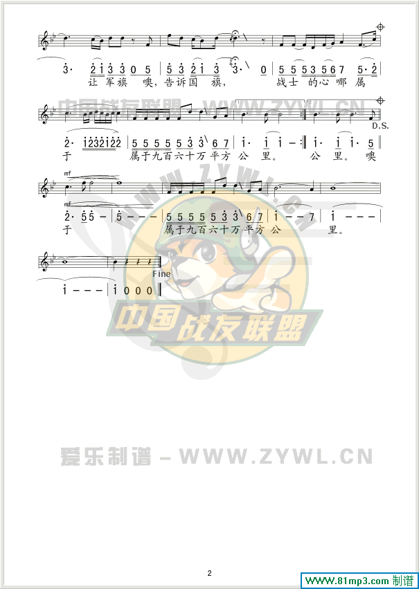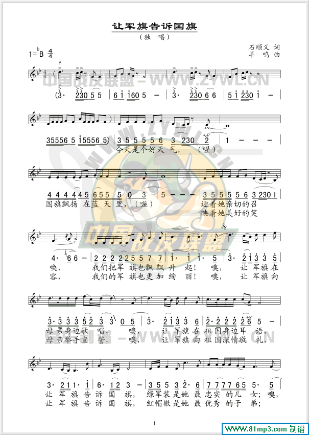 让军旗告诉国旗 线、简谱混排版