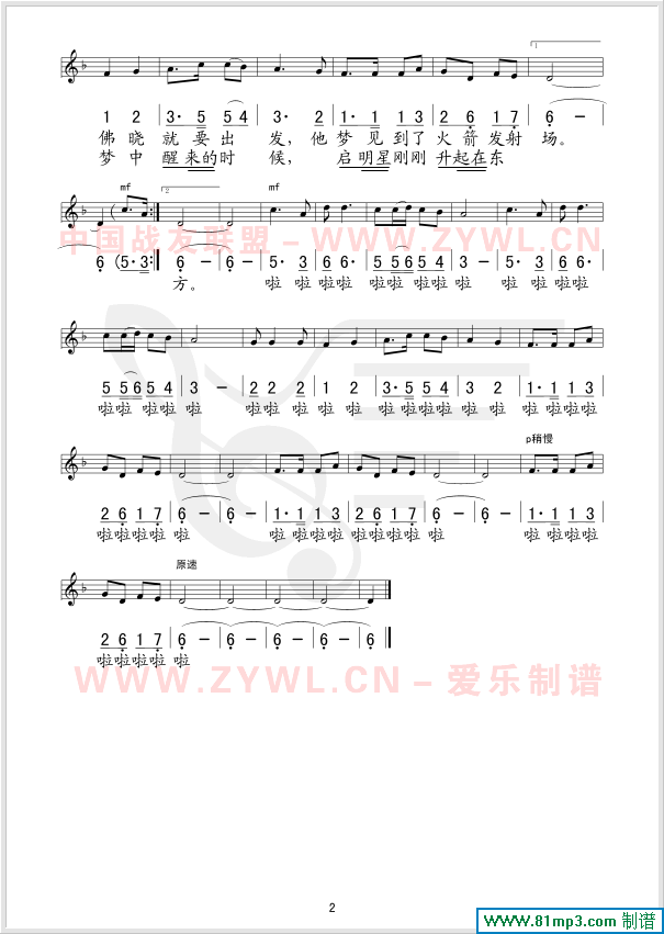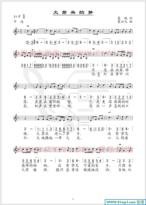 火箭兵的梦 线、简谱混排版