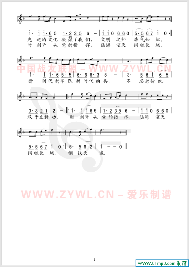 中国人民解放军通信兵进行曲 线、简谱混排版