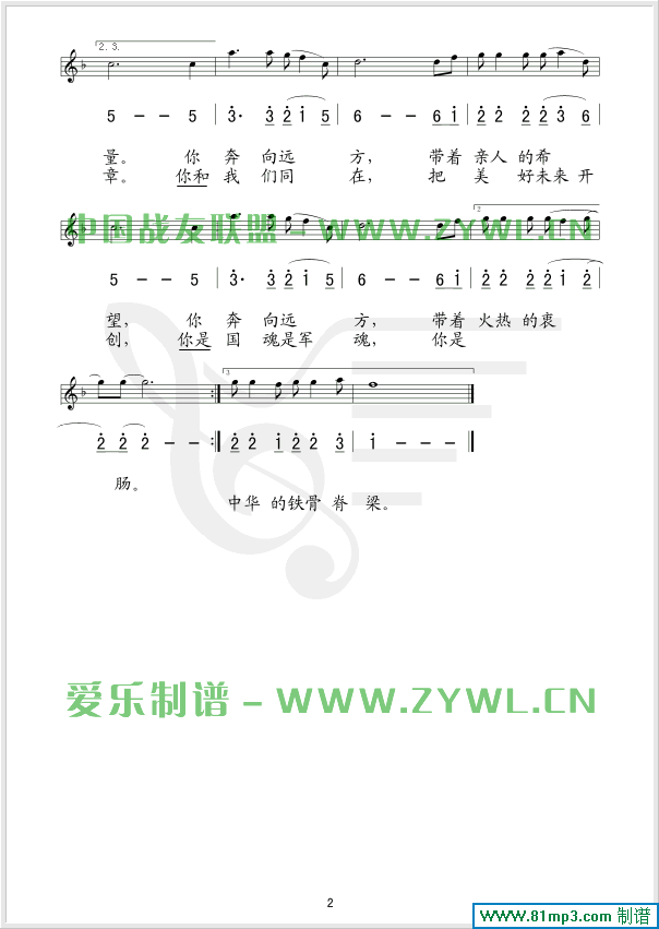 热血颂 线、简谱混排版