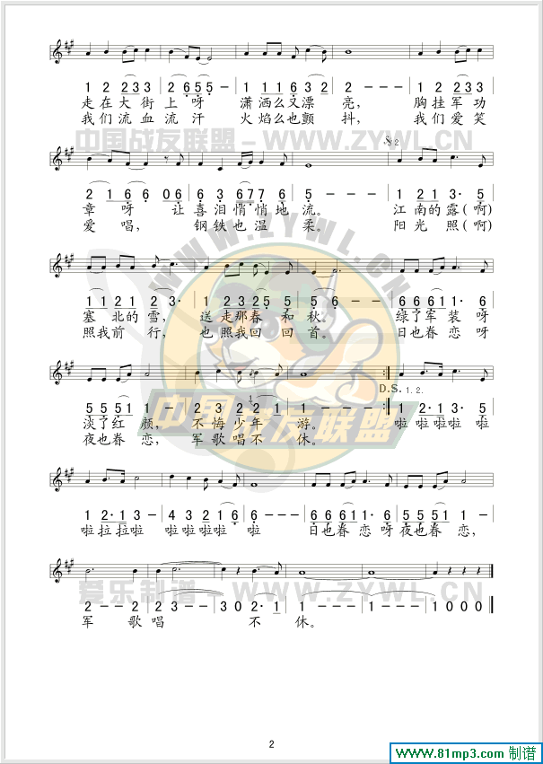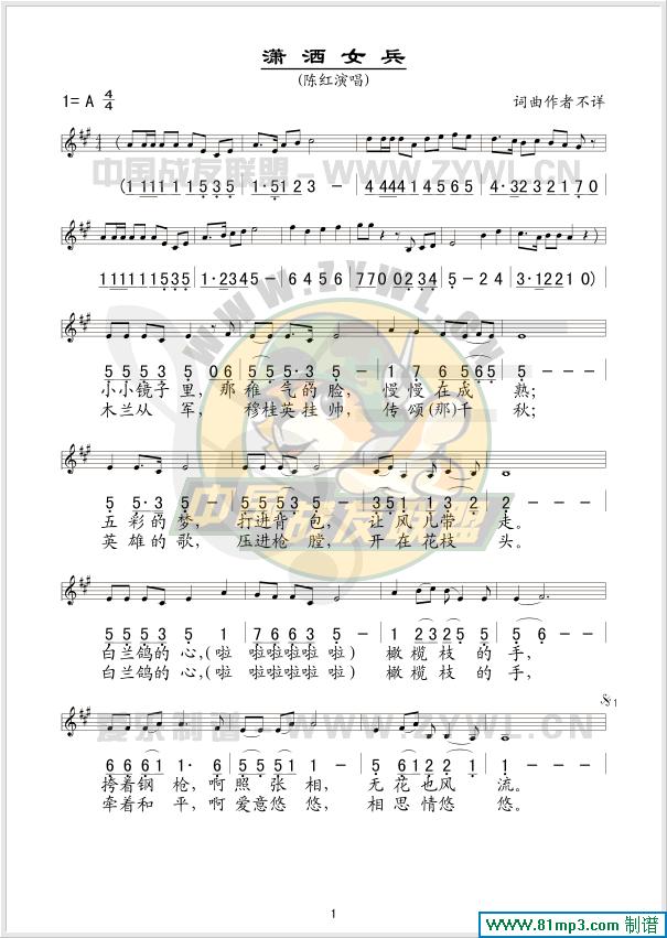 潇洒女兵 线、简谱混排版