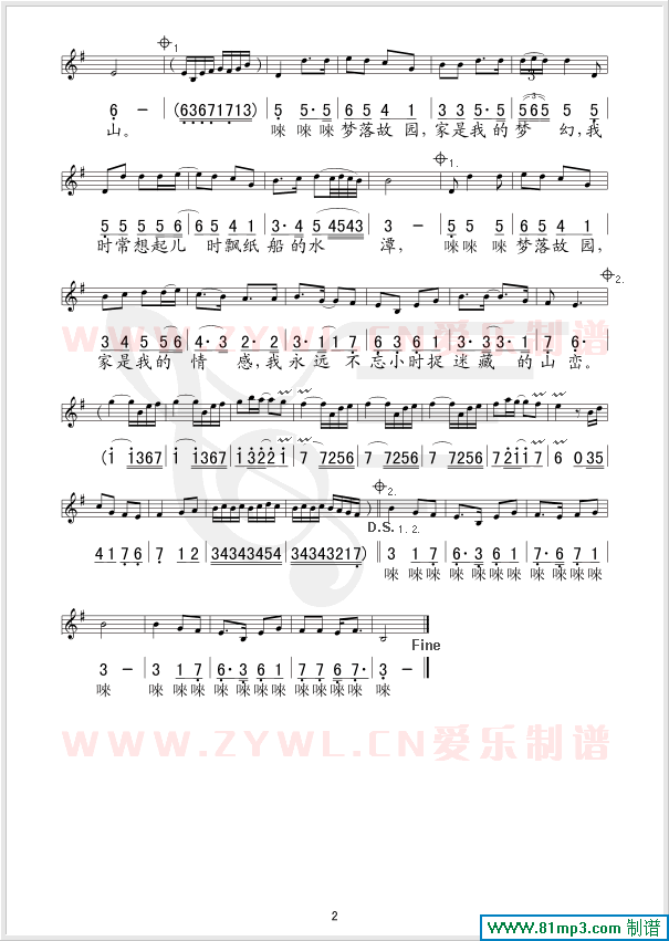 梦落故园 线、简谱混排版
