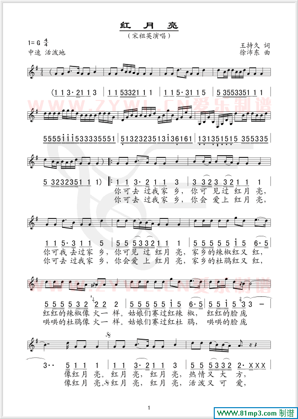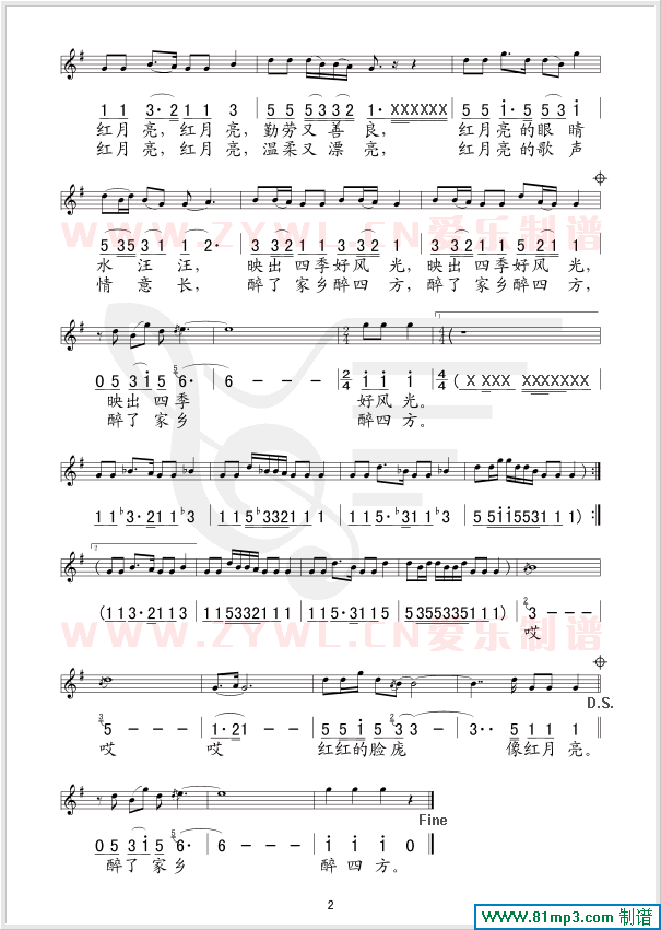 红月亮 线、简谱混排版