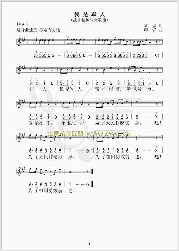 我是军人 线、简谱混排版