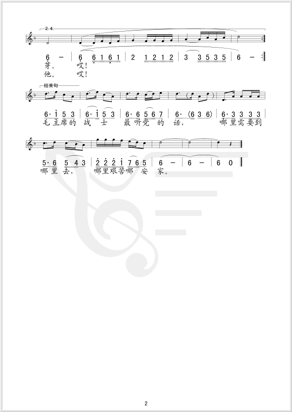 毛主席的战士最听党的话 线、简谱混排版