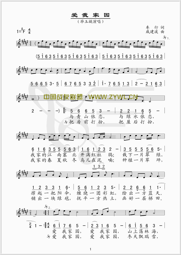 爱我家园 线、简谱混排版