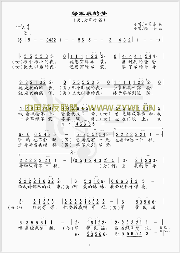 绿军装的梦 线、简谱混排版