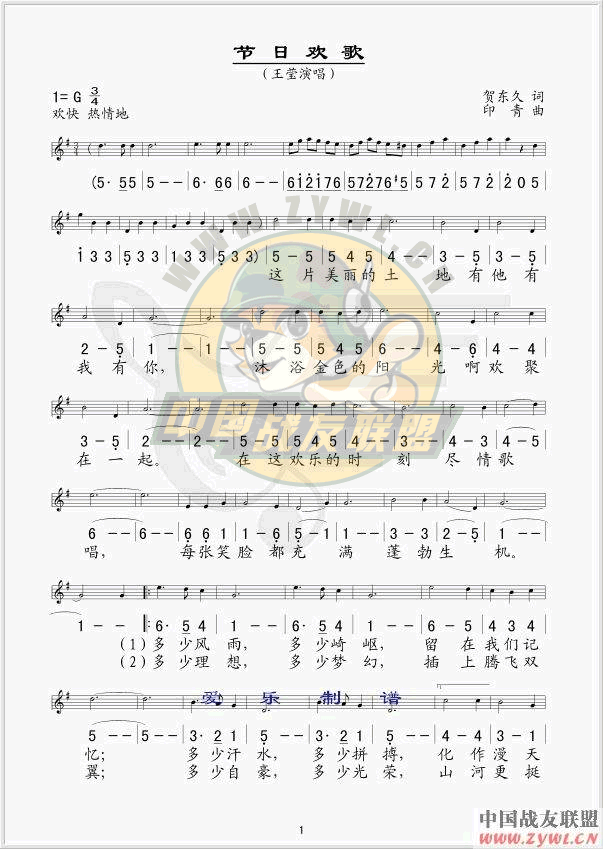 节日欢歌 线、简谱混排版
