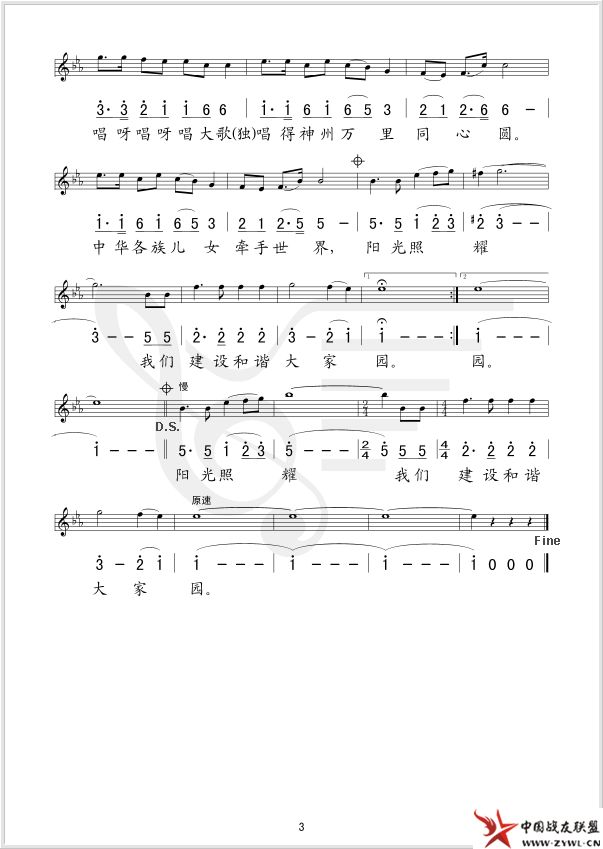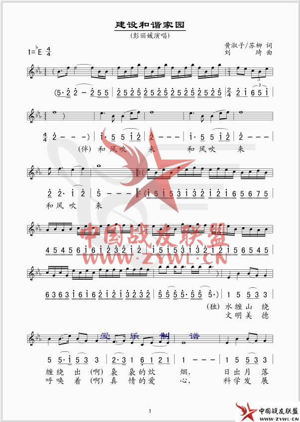 建设和谐家园 线、简谱混排版