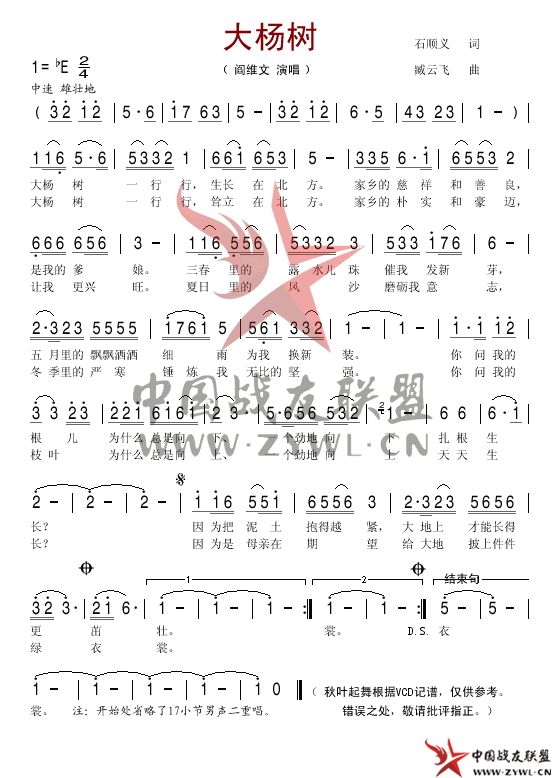大杨树简谱