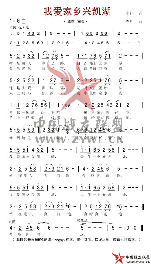 我爱家乡兴凯湖简谱