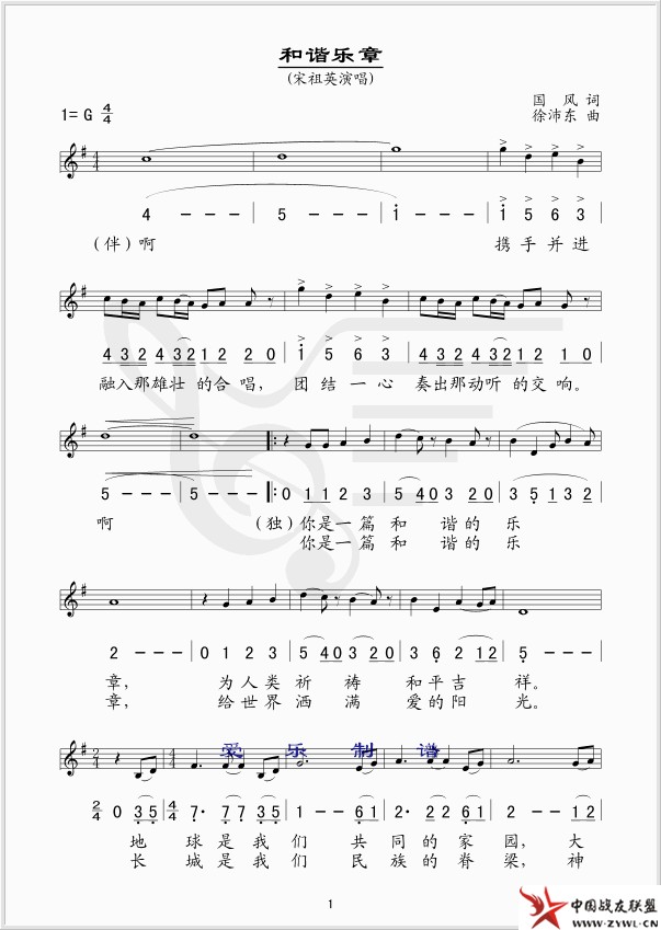和谐乐章 线、简谱混排版