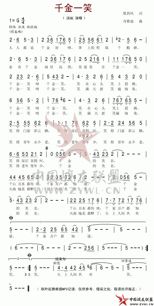 千金一笑简谱