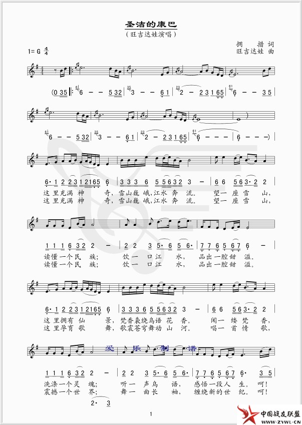圣洁的康巴 线、简谱版