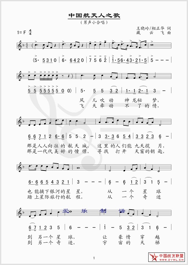 中国航天人之歌 线、简谱混排版