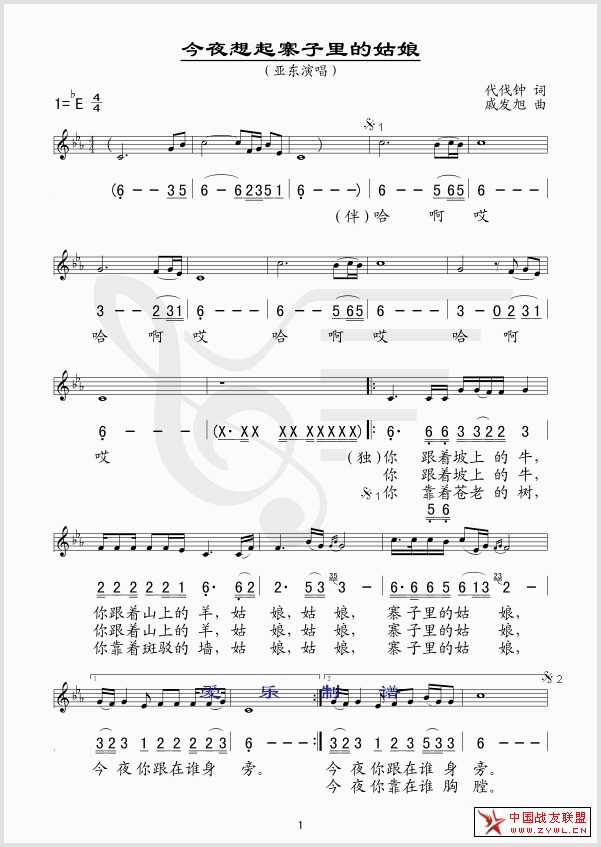 依据该首歌曲的原稿制作的歌谱:(以此为准)