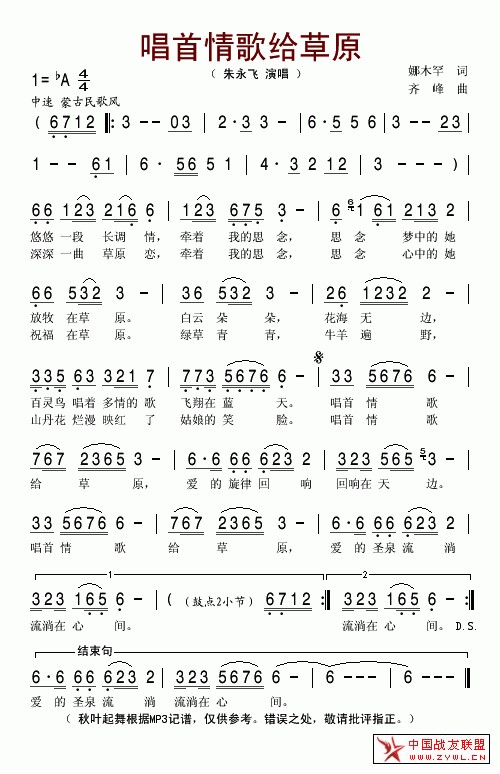 唱首情歌给草原简谱