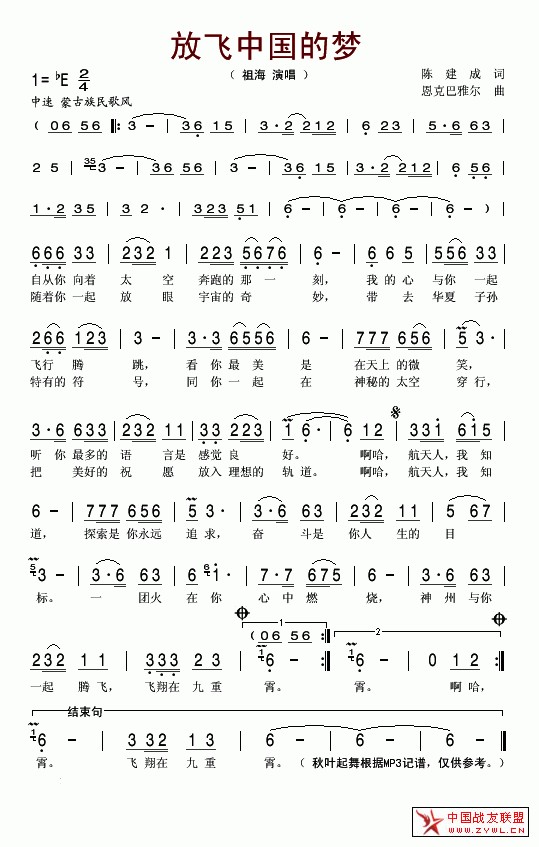 放飞中国的梦简谱
