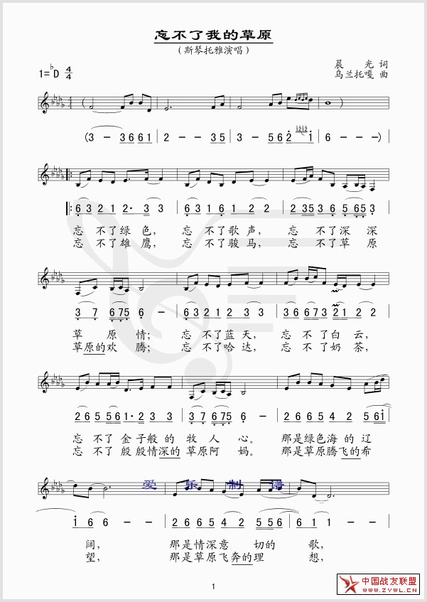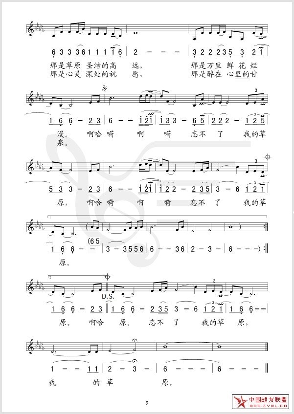 忘不了我的草原 线、简谱混排版