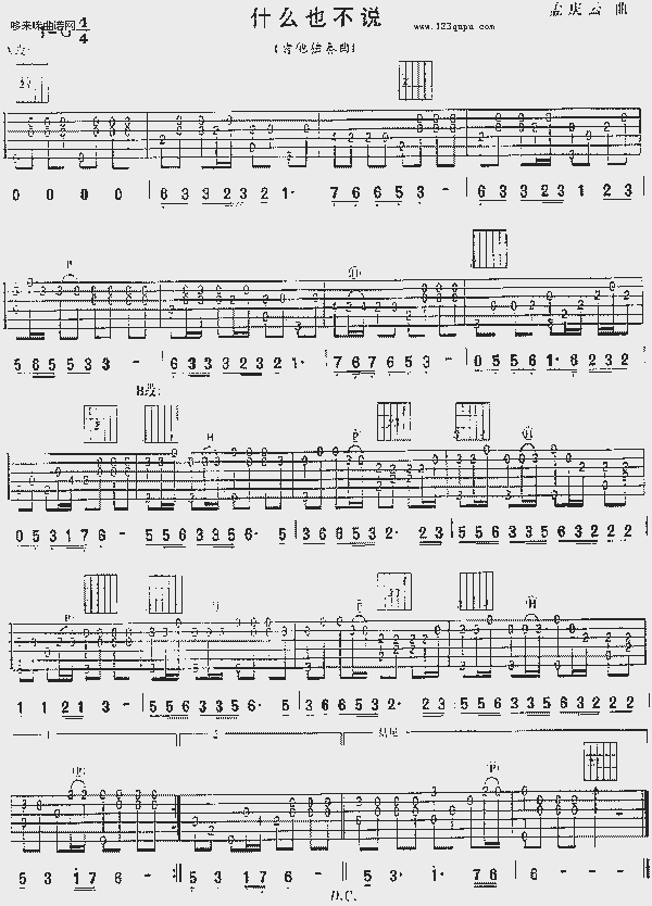品书香曲谱资料器乐曲谱吉他曲谱 → 什么也不说-刘斌