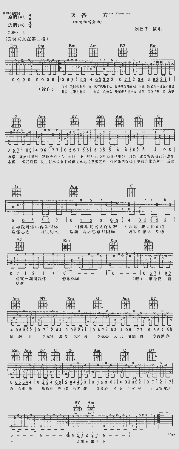 品书香曲谱资料器乐曲谱吉他曲谱 → 天各一方 (刘德华)