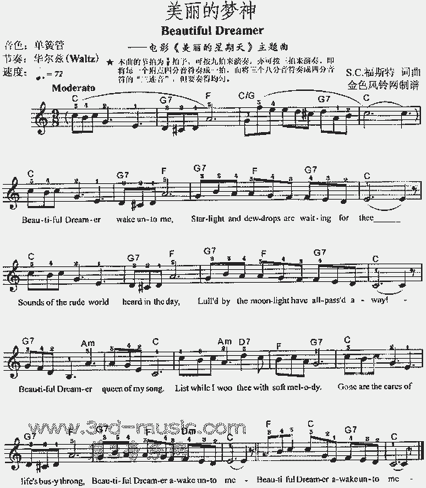 → 美丽的梦神 Beautiful Dreamer(《美丽的星期天》主题曲)[电子琴谱]
