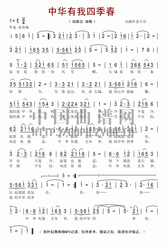 最新民歌曲谱