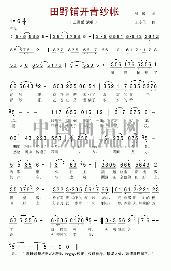 热点民歌曲谱