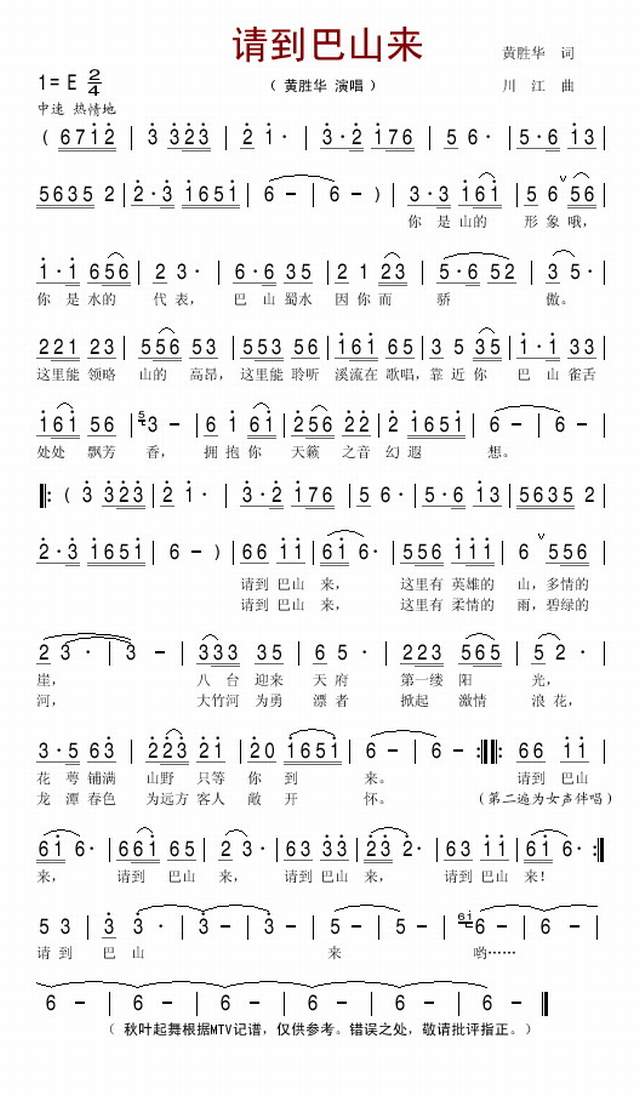 推荐民歌曲谱