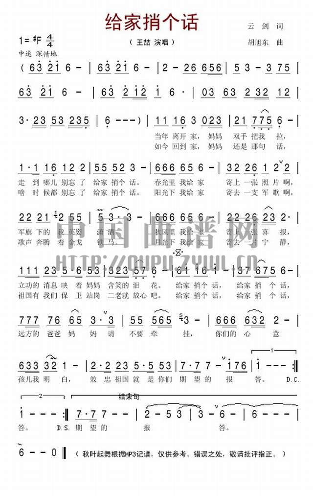 推荐民歌曲谱