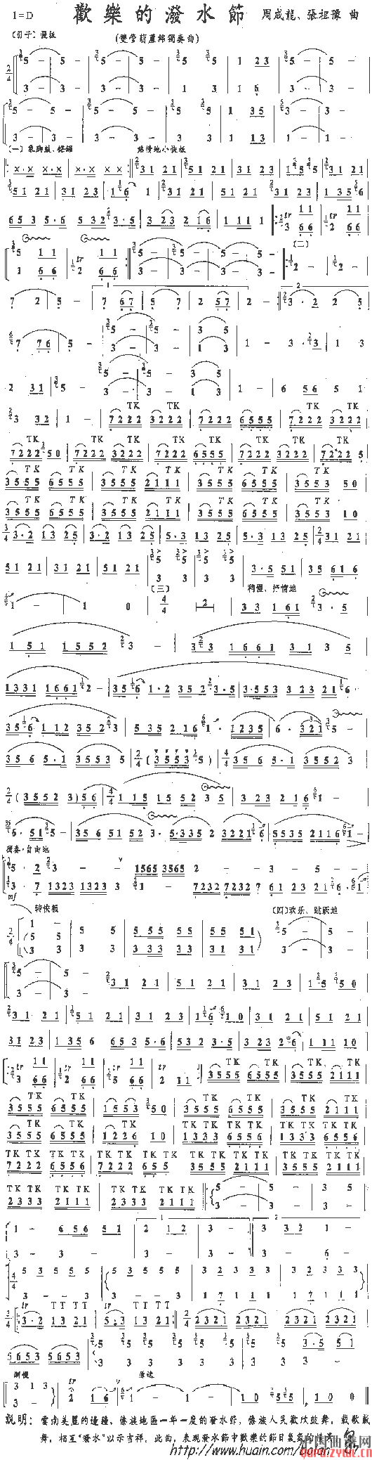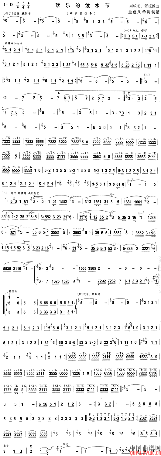欢乐的泼水节(葫芦丝乐谱)