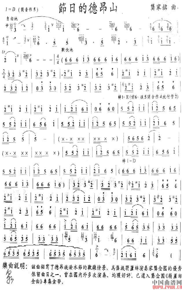 节日的德昂山(笛子乐谱)