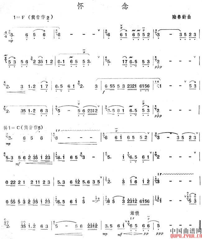 怀恋( 笛子乐谱)