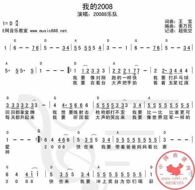 我的2008(简谱+和弦)