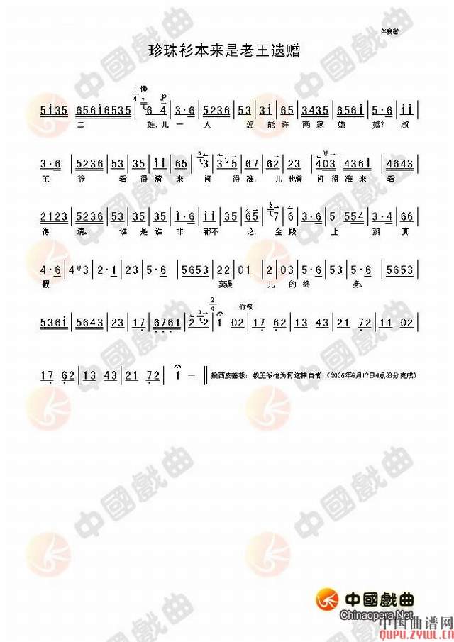 珍珠衫本来是老王遗赠(京剧《状元媒》琴谱 )