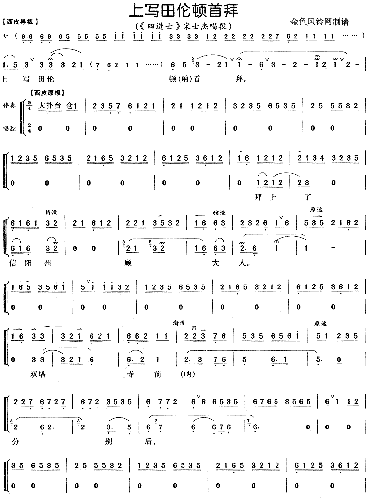 上写田伦顿首拜(《四进士》宋士杰唱段)