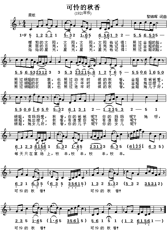 可怜的秋香[简谱]