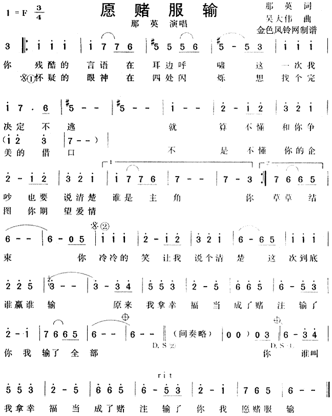 愿赌服输[简谱]