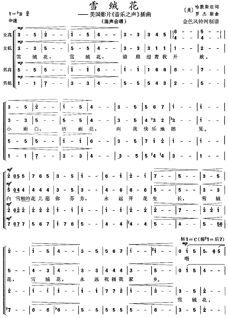 雪绒花(《音乐之声》插曲)[合唱曲谱]
