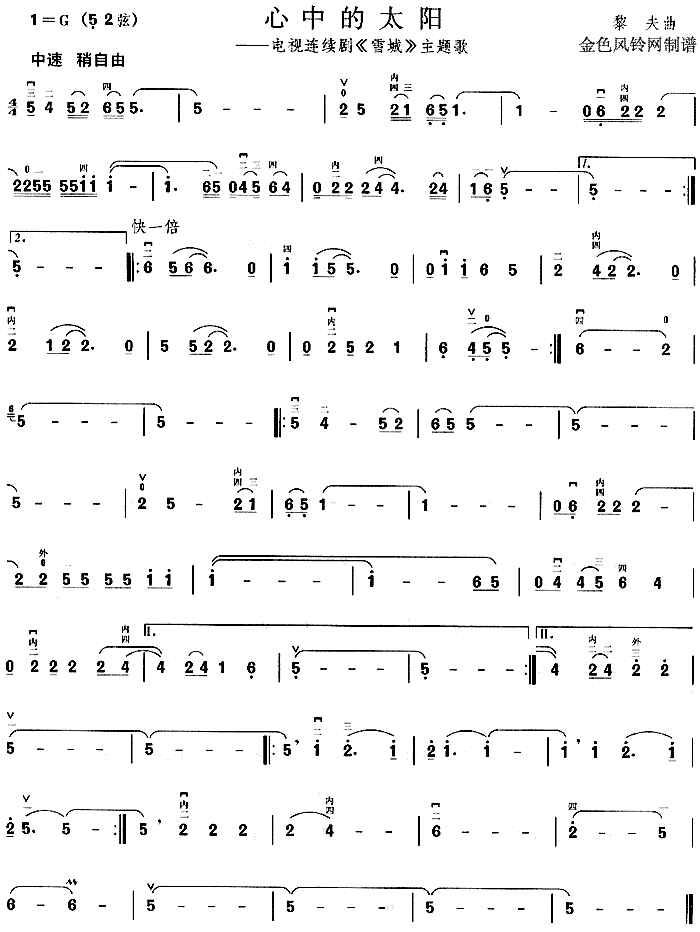 心中的太阳(《雪城》主题歌)[二胡曲谱]