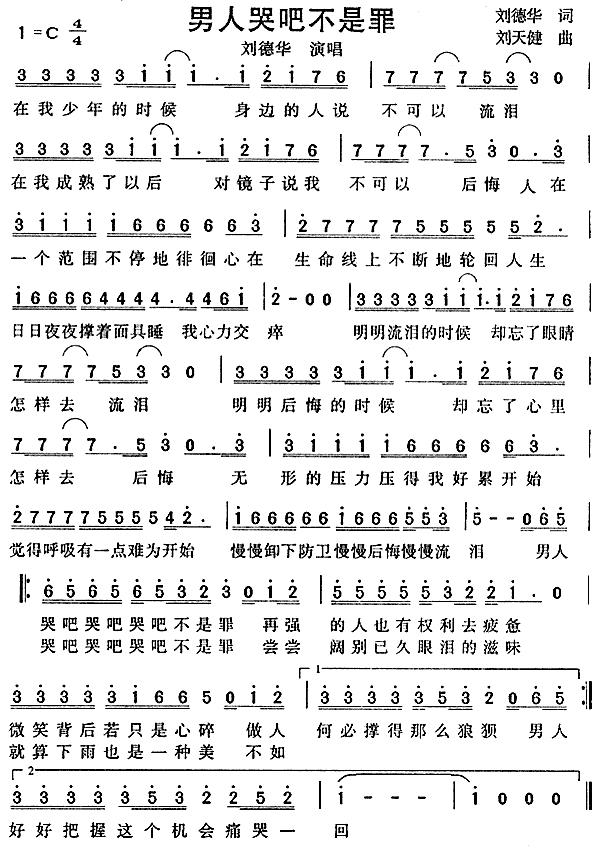 男人哭吧不是罪[简谱]