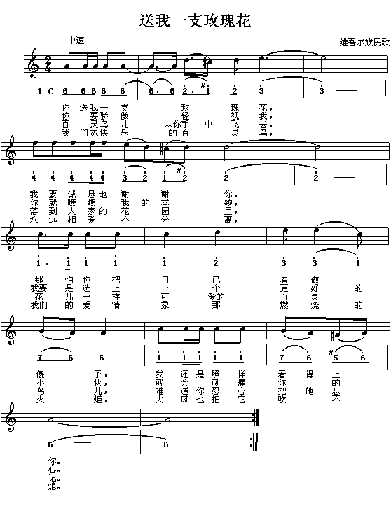 送我一支玫瑰花(维吾尔族民歌)[简谱]