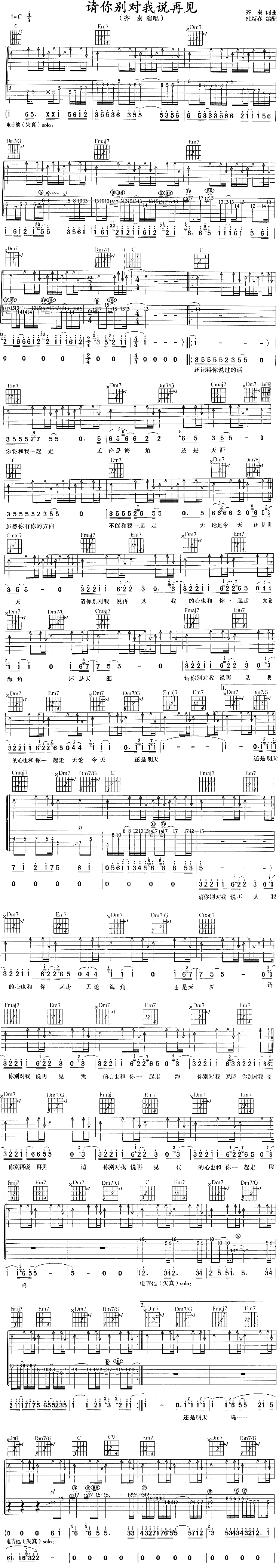 请你别对我说再见[简谱]