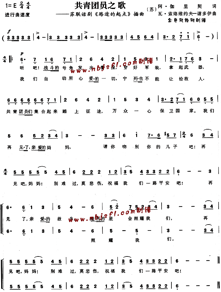 共青团员之歌(《路途的起点》插曲)[合唱曲谱]