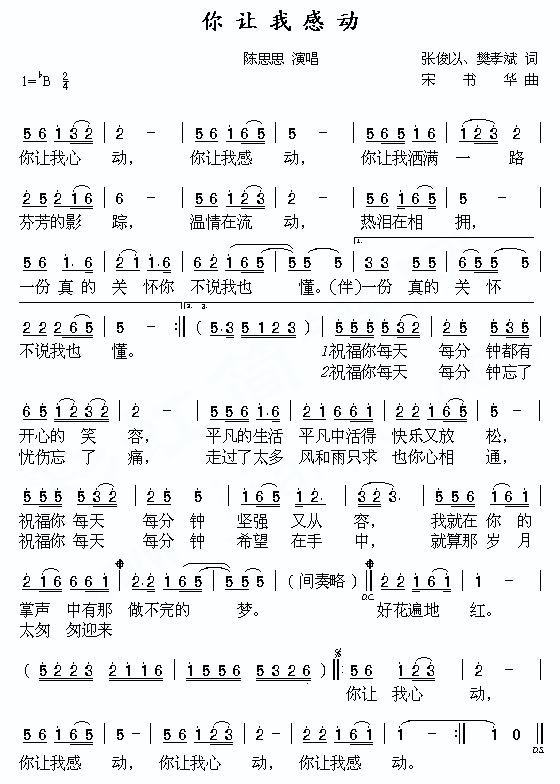 你让我感动[简谱]