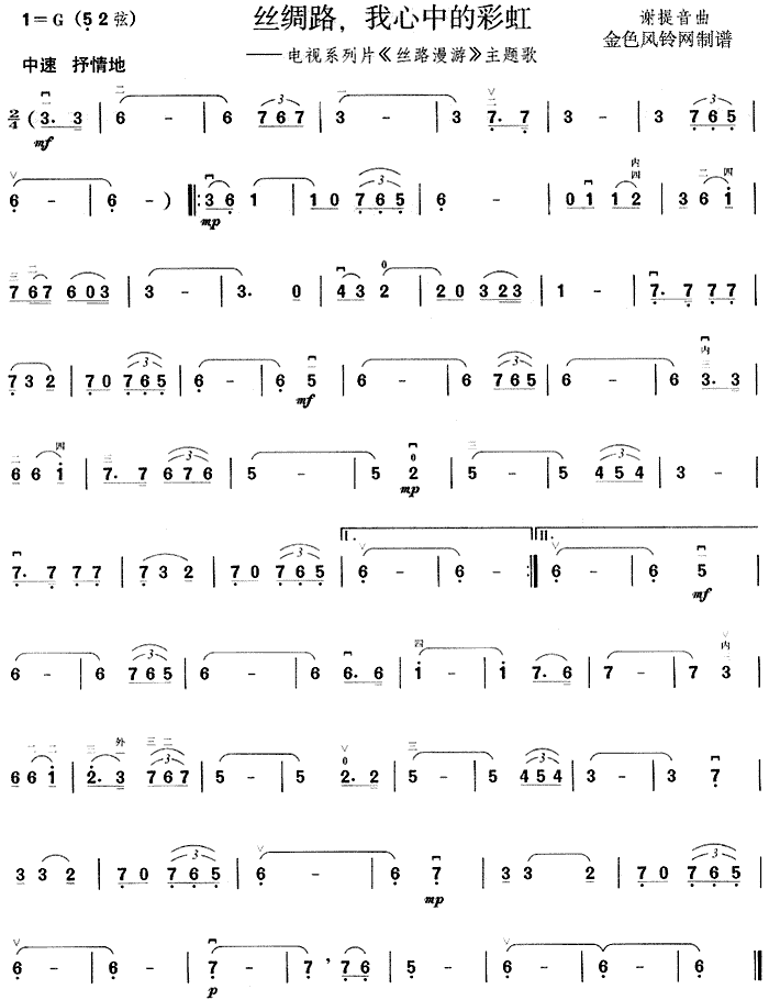 丝绸路我心中的彩虹(《丝路漫游》主题歌)[二胡曲谱]