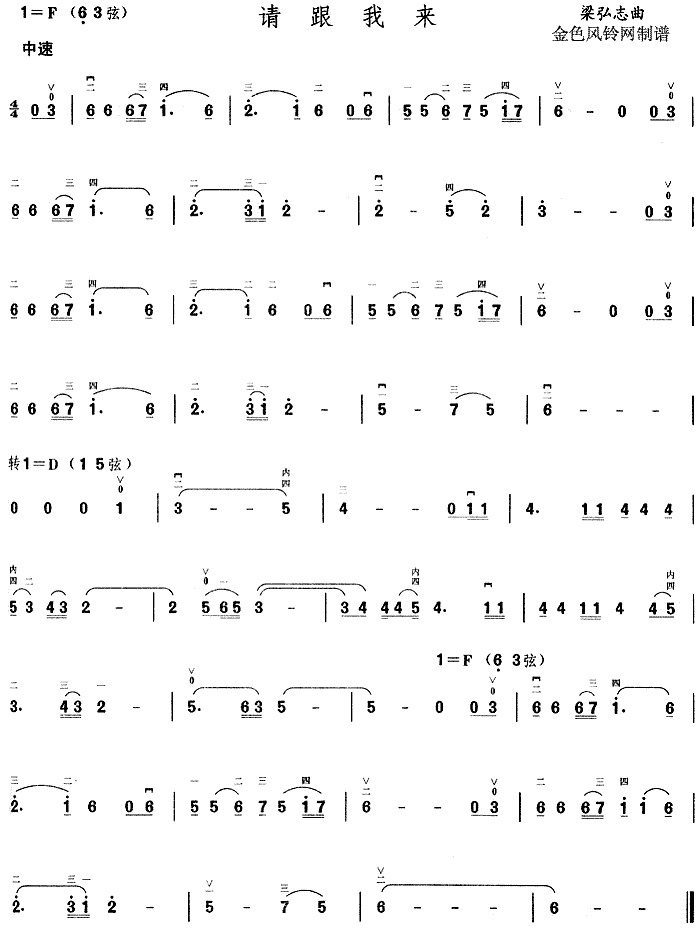 请跟我来[二胡曲谱]