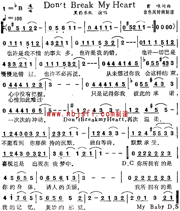 Don't Break My Heart[简谱]