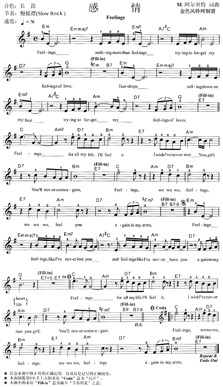 感情 Feelings[电子琴谱]